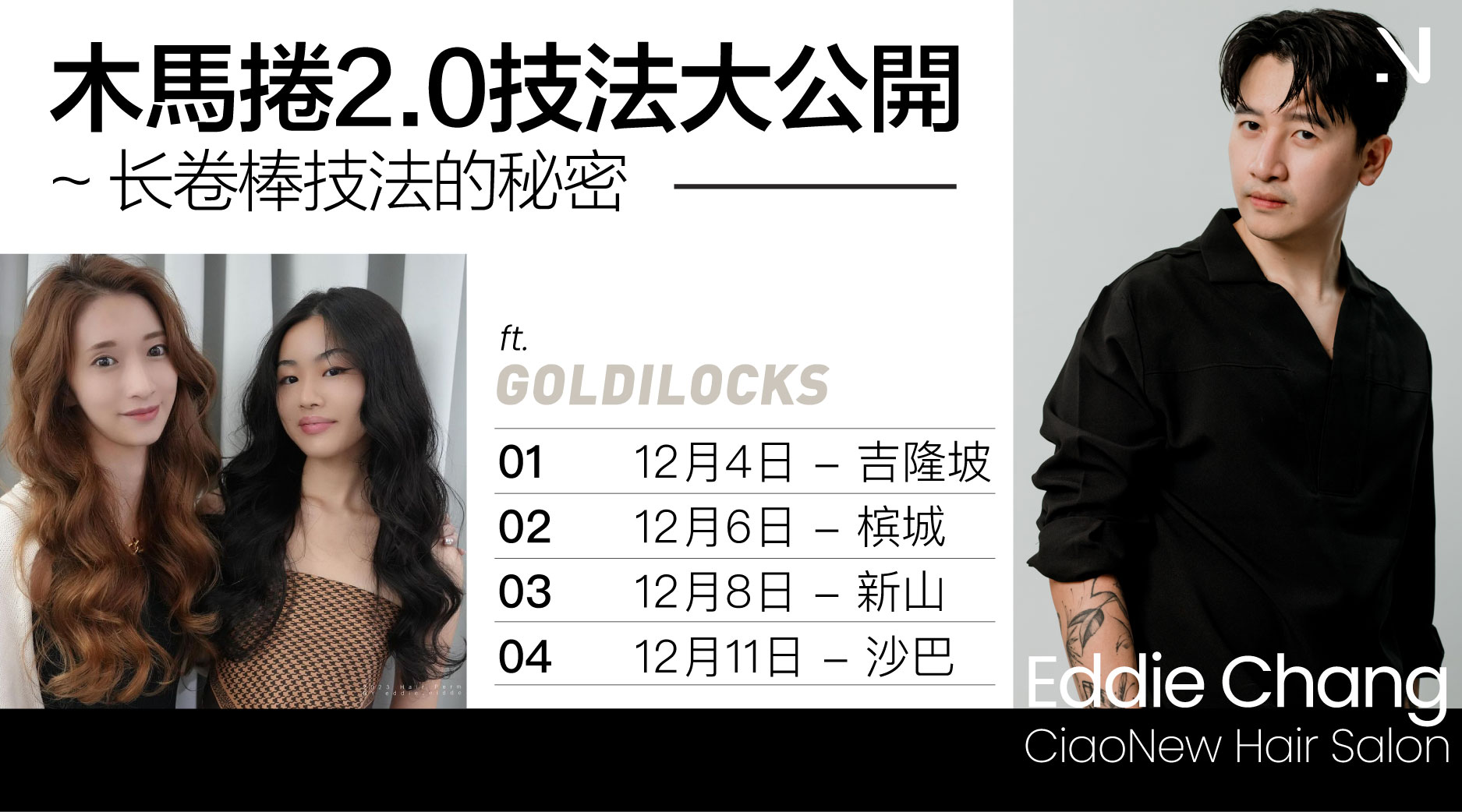 12月,Eddie老师将亲临马来西亚,为大家揭示木马卷2.0烫发的细节,帮助美发专业人士提升技术,提高业绩。他将在吉隆坡、槟城、新山和沙巴授课。这是一个绝佳的机会,与Eddie老师一起深入探讨木马烫的奥秘,并提升您的职业技能。