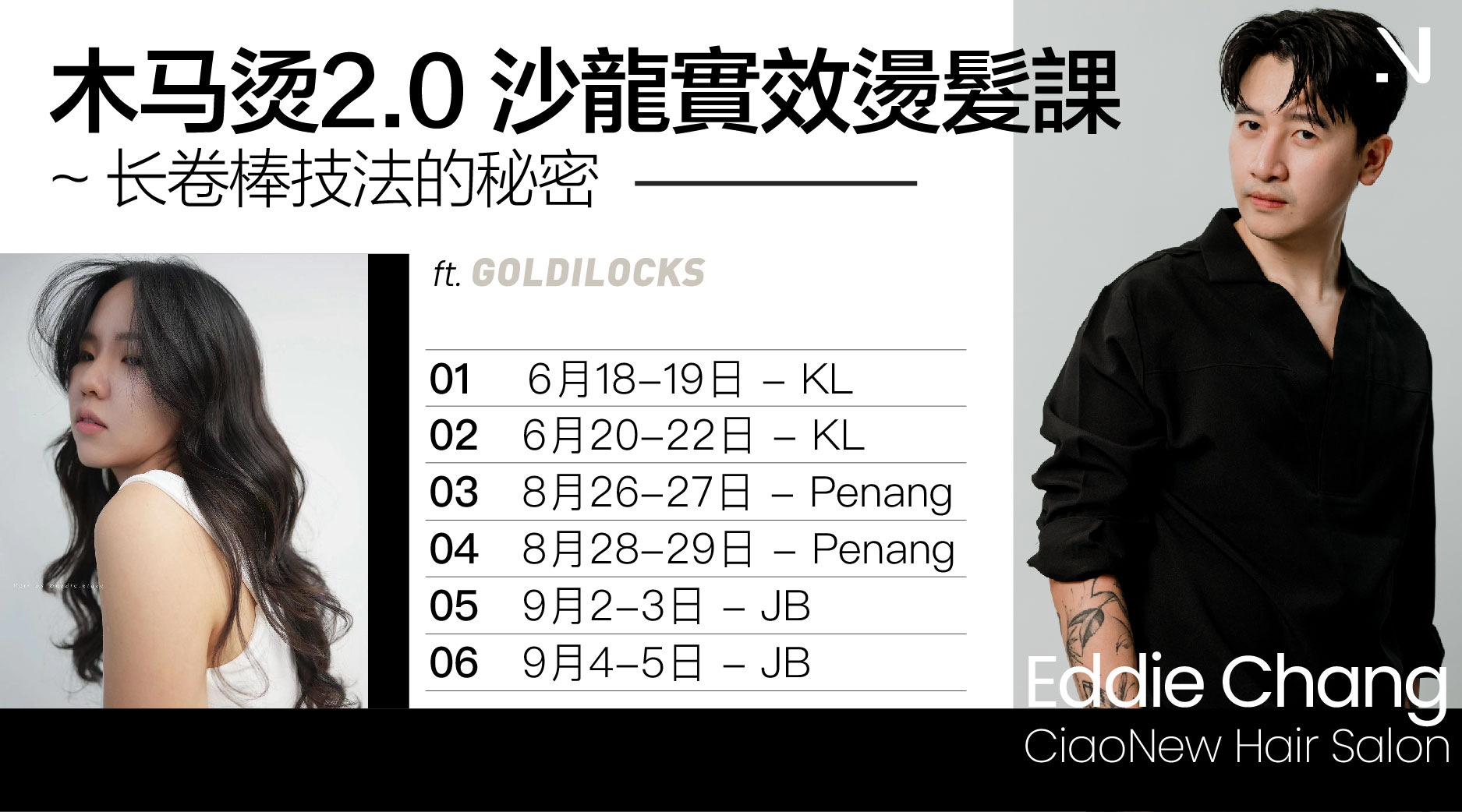 欢迎大家报名参加木马卷2.0技法大公开课程,由来自台湾的美发专家Eddie老师授课,他将带您一同探索长捲棒技法的秘密!Eddie老师是一位拥有超过20年美发经验,其中有10年专注于美发教育的台湾美发专家。他带来了丰富的专业知识和技术,备受学员和美发行业的尊敬与喜爱。