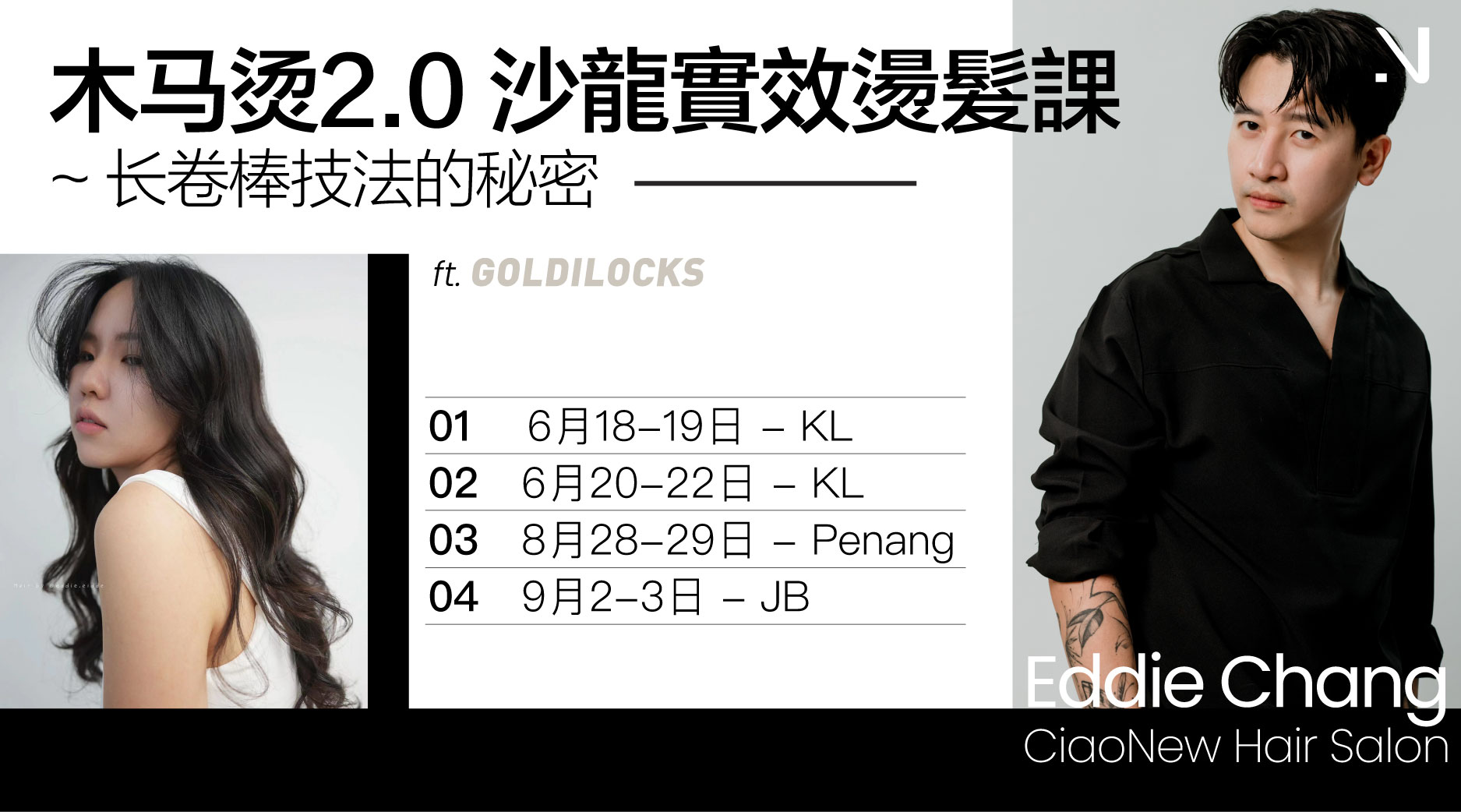 欢迎大家报名参加木马卷2.0技法大公开课程,由来自台湾的美发专家Eddie老师授课,他将带您一同探索长捲棒技法的秘密!Eddie老师是一位拥有超过20年美发经验,其中有10年专注于美发教育的台湾美发专家。他带来了丰富的专业知识和技术,备受学员和美发行业的尊敬与喜爱。